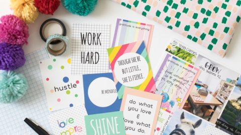 In concert with the release of her vision board book, Carrie Elle has designed these 9 colorful, printable quote cards. Each one features a different short quote and is decorated with pretty dots and stripes. These vibrant cards are sure to bring a smile to your face, whenever you catch a glimpse of them.