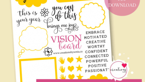 Sonya Forrest has made this amazing downloadable PDF available for free! Not only does it include affirmations, quotes and power words, you will also find inspiring photos and cute shapes to help you bring your whole vision to life. What a nice gesture it was for her to make this happen.